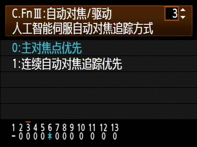 “C.Fn III:从动对焦/驱动”中的“1:人工智能伺服逃踪活络度”是变动人工智能伺从命动对焦时相灵活做特征的自定义功能?